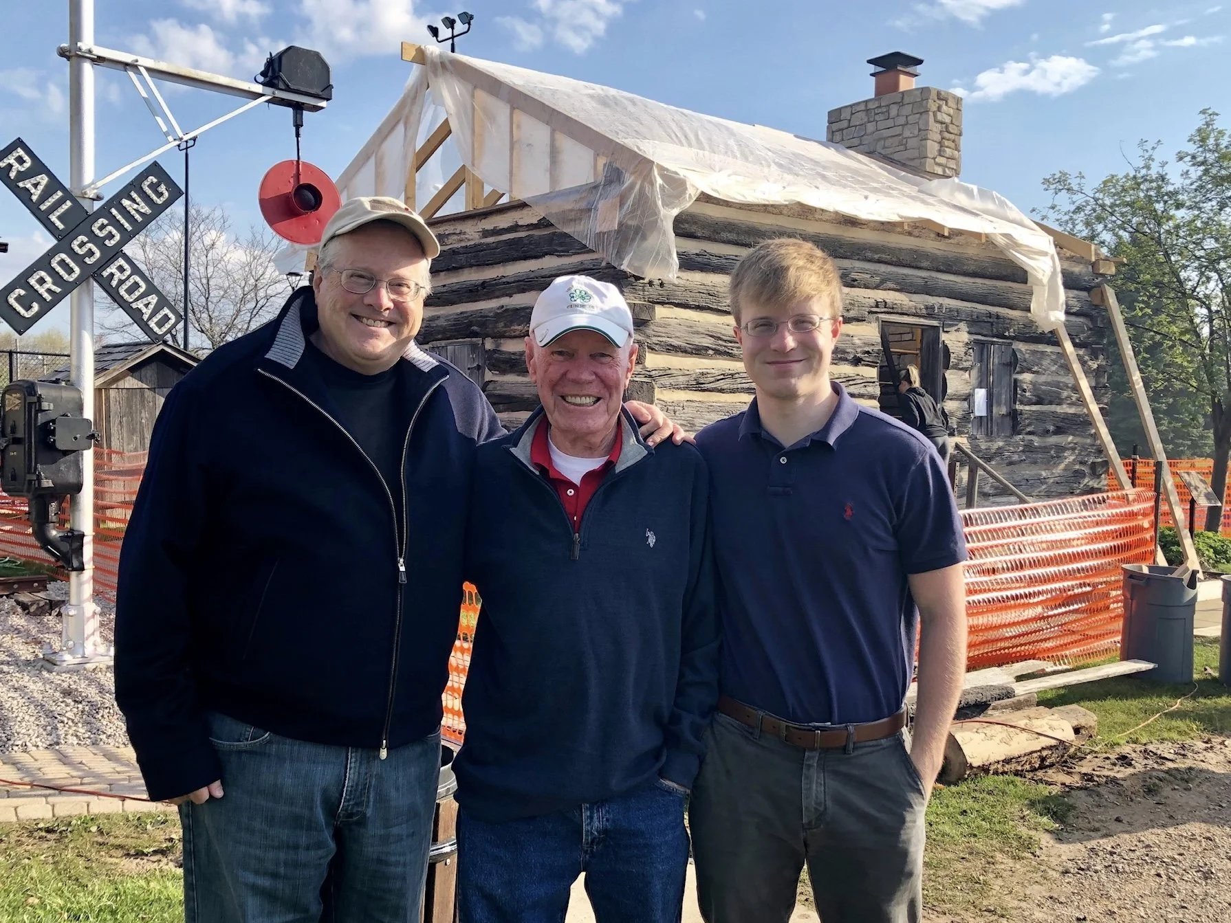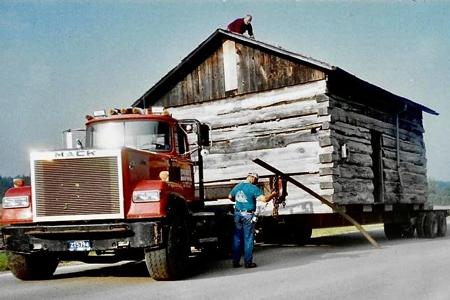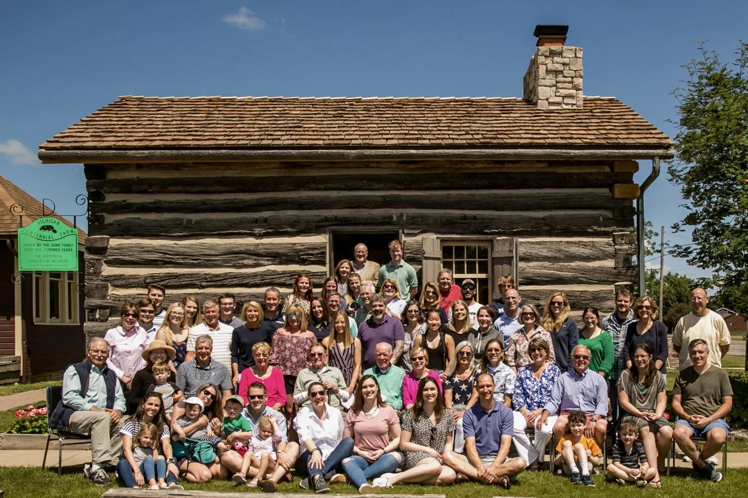 My great-great-grandfather John Donley and his two brothers built this log cabin near Lenox, Michigan in the 1850s after fleeing Ireland in the potato famine. The cabin deteriorated over time and, by the early 1900s, was occupied mostly by hired hands and sheep. In 1932, my grandfather Hugh Donley lost his job at a Detroit auto parts company, returned to the farm and lived in the 16-by-20-foot cabin with his wife Frances and seven children for most of the Depression. In the late 1960s, my parents and Uncle Larry Donley led a major restoration of the cabin at its original location on the farm. But after an arsonist nearly destroyed the cabin in 1996, we jacked up the cabin and moved it to a nearby historical village run by the Richmond Area Historical & Genealogical Society (RAHGS).